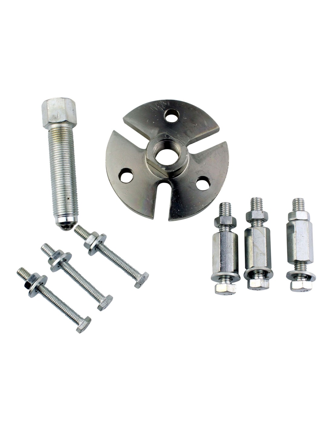 Flywheel Pullers are very versatile engine service tools and are a must in every toolbox. Our large selection of best selling rotor and flywheel pullers fit just about any motorcycle or ATV. Flywheel pullers are very simple to use, having only an outer body to hold the flywheel and a screw to push on the crankshaft. Some are even simpler, having only a bolt to thread into the flywheel. A taper holds the flywheel or rotor and the crankshaft together. The flywheel is secured to the shaft by applying torque to the fixing bolt.
